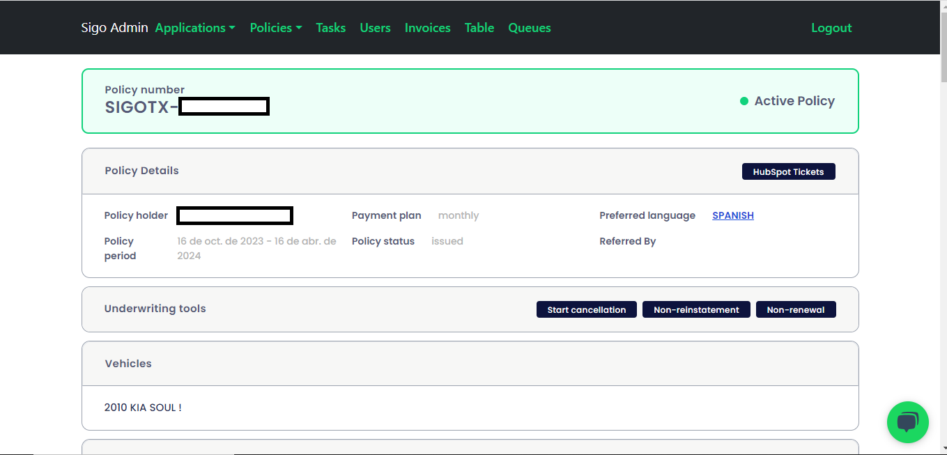 Se ingresa a la póliza 📄 del cliente en el portal Admin 🖥️.