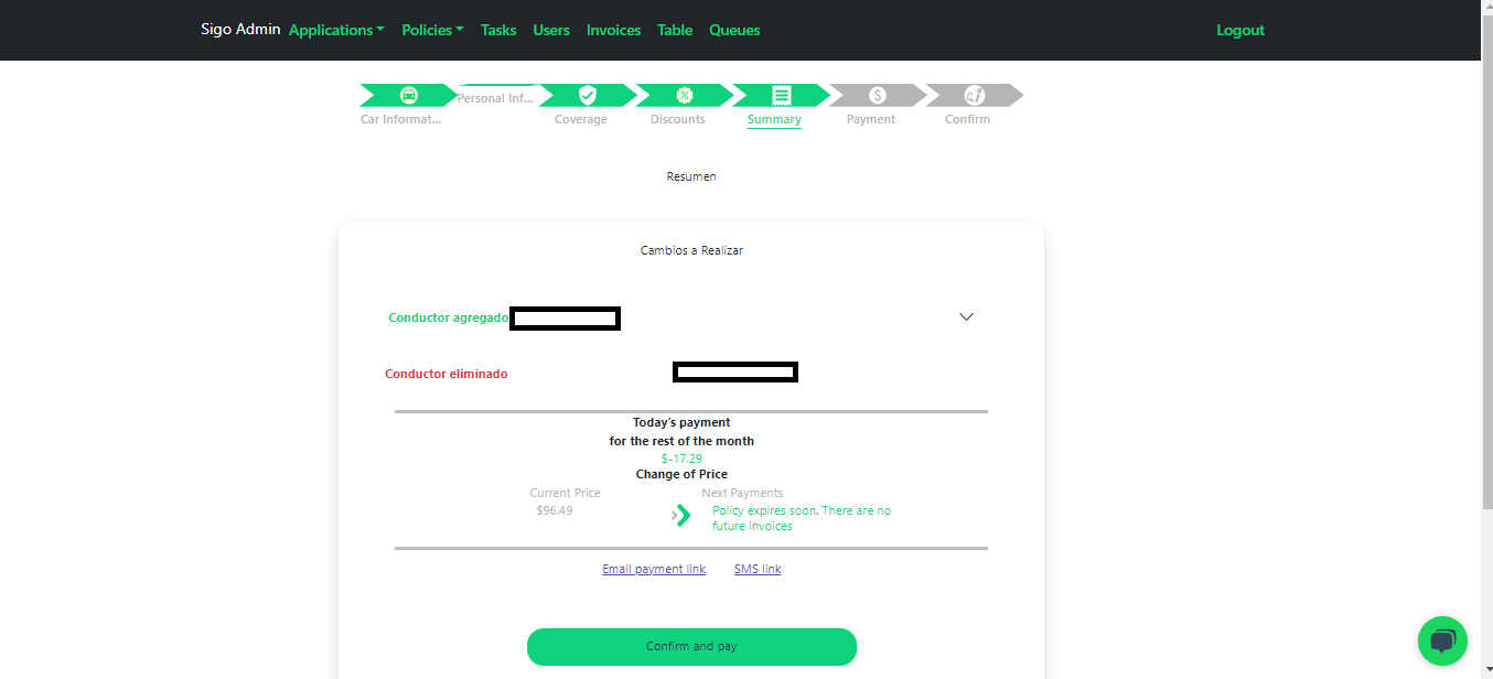 Este pago se puede llevar a cabo por un link 🔗 que se le puede enviar al cliente mediante correo electrónico 📧 o mediante SMS 📱. De ser necesario, nosotros podemos tomar el cobro 💳 de dicho endoso para que se puedan llevar a cabo los cambios en la póliza.