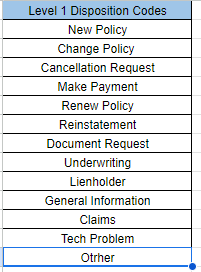 Actualmente tenemos la lista de dispositions compartida en la lista de la imagen de arriba la cual muestra las opciones que podemos seleccionar en esa opción al momento de finalizar cada interacción.