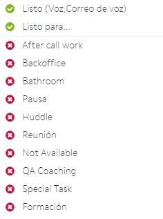 Listo: Es el estado disponible para permitir el acceso de llamadas vinculada a la estación del representante.