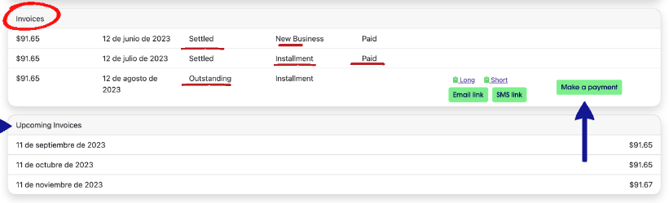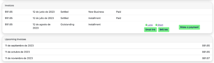 Por ello, tenemos la opción de "invoices" en la póliza para poder verificar los pagos realizados por los elementos asegurados que tienen nuestros clientes. ✅- Esto se puede verificar en la página del administrador con la póliza del cliente. 💻