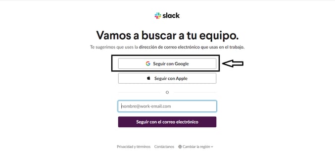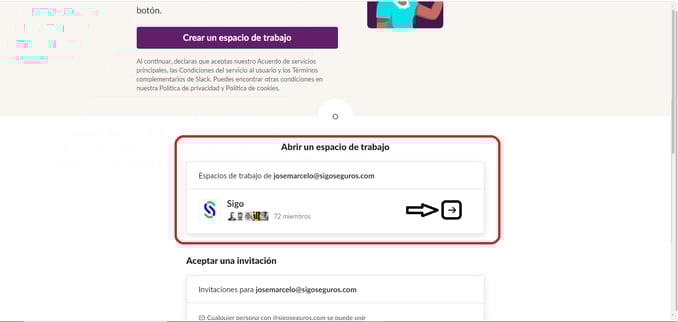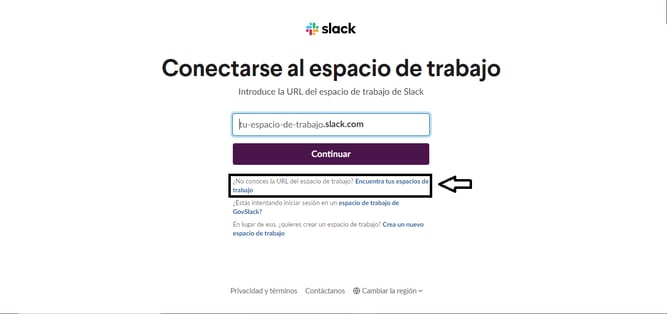2.Luego para poder acceder es necesario seleccionar la opción "Encuentra tus espacios de trabajo":