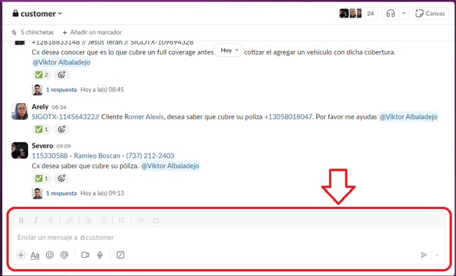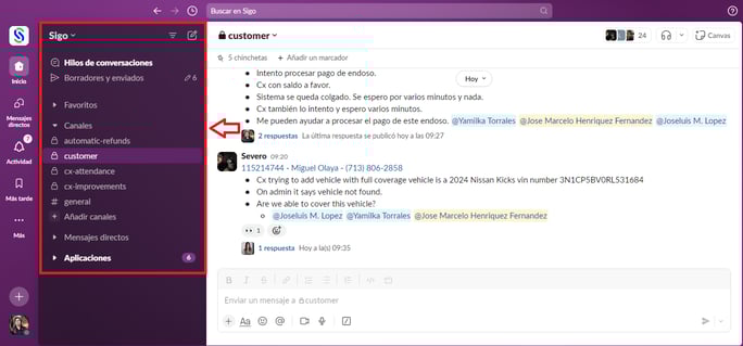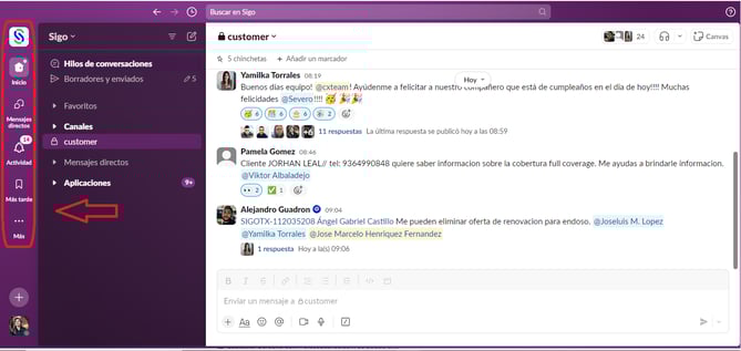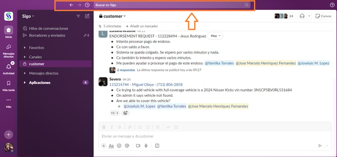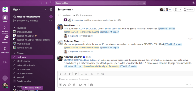 Slack es nuestra herramienta de comunicación interna para escalación y consultas del equipo Sigo Seguros: