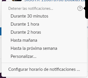 En esta opción se selecciona diferentes intervalos para poder pausar las notificaciones que se pueden generar en las interacciones de la plataforma.