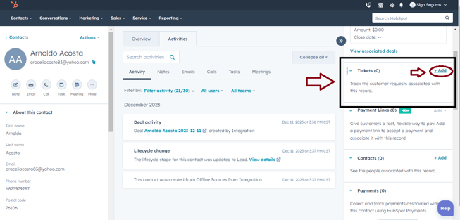 → 🏷️ Ticket name: tiene que ir la información de número de póliza y nombre del cliente.