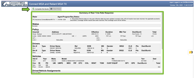 2. Para continuar y completar la cotización, se hace click en la opción “Complete this Quote.”