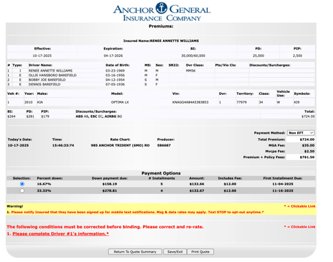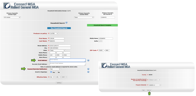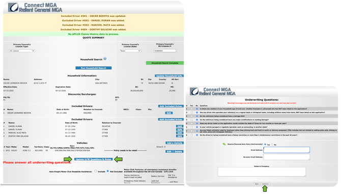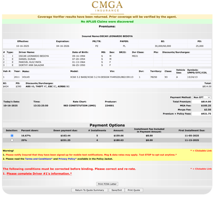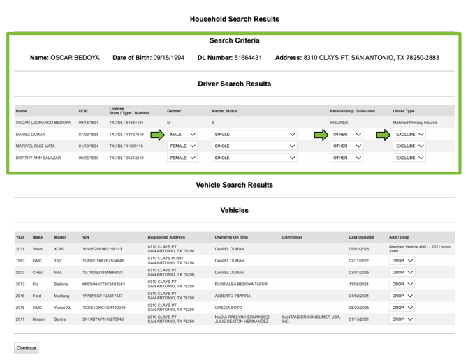 Durante este paso se revisa la información de los conductores asociados y de los vehículos registrados en la dirección del cliente.