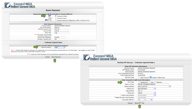 3. Si aplica, se marca la casilla “Save Payment” o “Save EFT” para guardar la información bancaria o de tarjeta para futuros pagos.