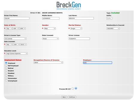 Otro diferenciador importante es la información de empleo del titular de la póliza (policyholder).